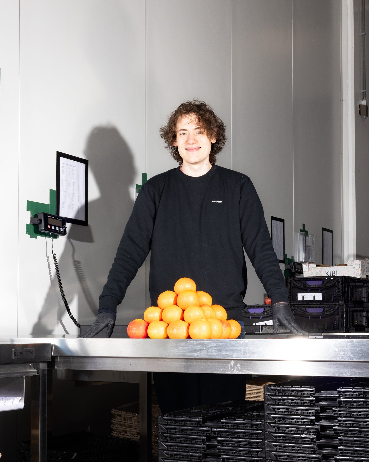 Neben seinem Studium an der Uni stellt Ömer jeweils einmal die Woche unsere Früchteboxen bereit.